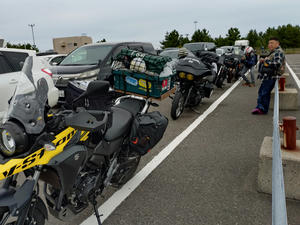 新潟港からフェリー。後ろのハーレーの兄ちゃん、知床ナンバーだったので聞いてみると「キャンプ?熊が出ますよ!」と!