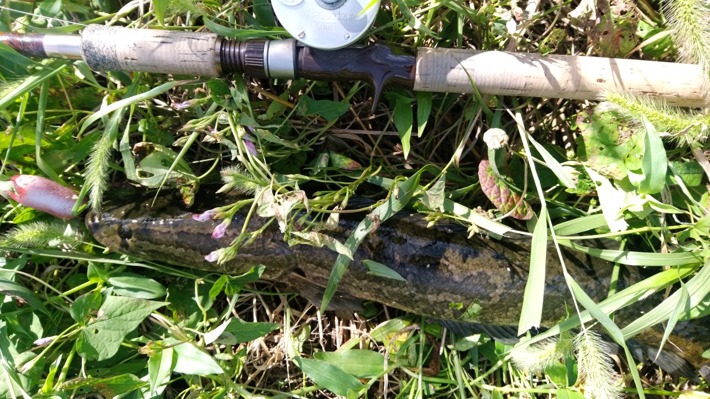 「うっすらボトムに影、鯉かと思ったがシルエットと動きで雷魚と判断、最初の反応は薄かったが徐々にアクションのピッチを上げ、スイッチオン!」・・・だそうです。もう教える事はナイ!