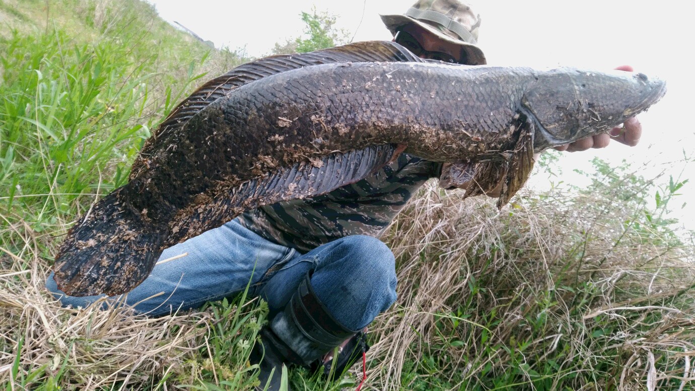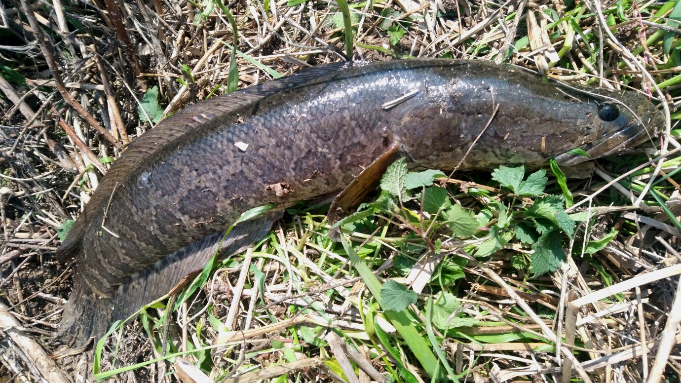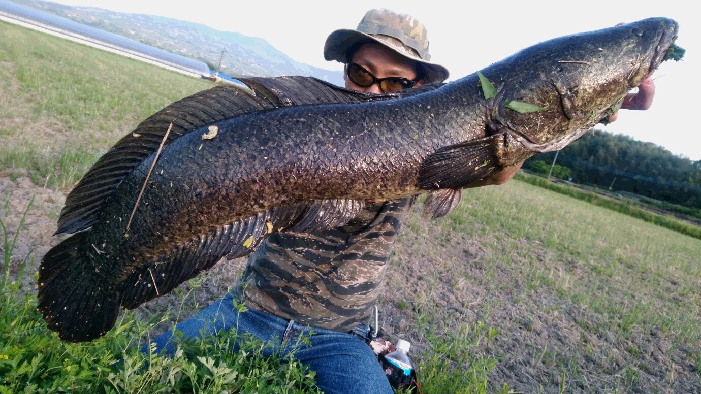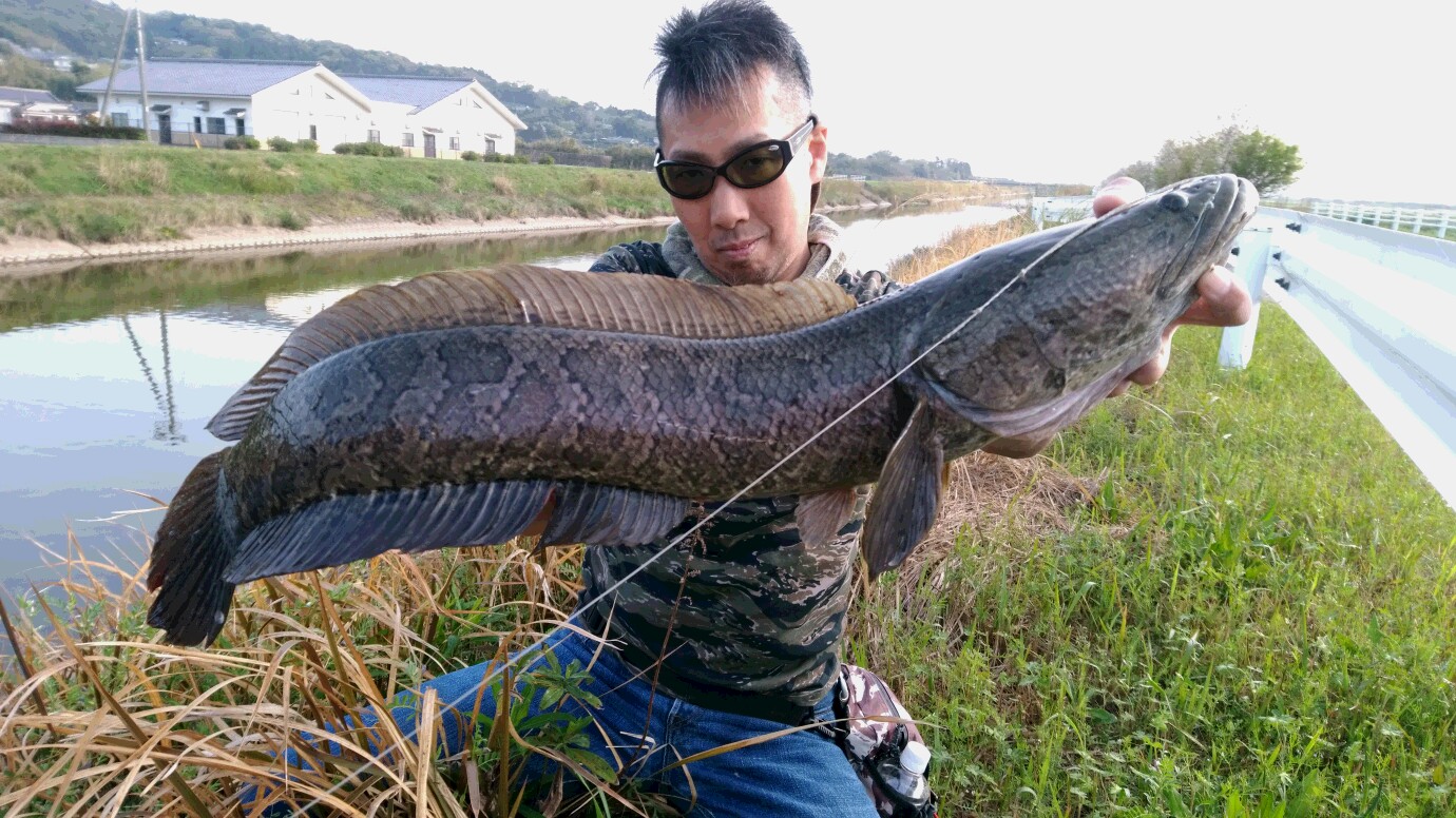 夕マズメパワーでなんとか、、と横を見るとう~っすらライギョぽいシルエットがボトムに、、チビではない!