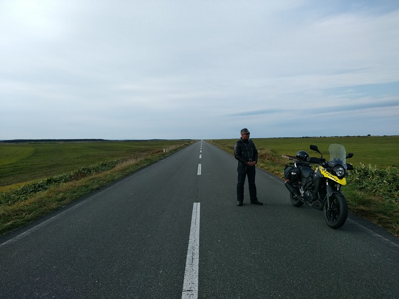 長~いストレート、道路の先が空に溶けていく、、