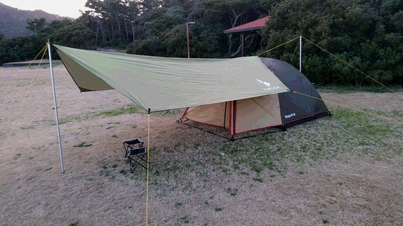 変なガサガサ音がテント周りで、、意を決してバッと外を見てもなんにも居ない!