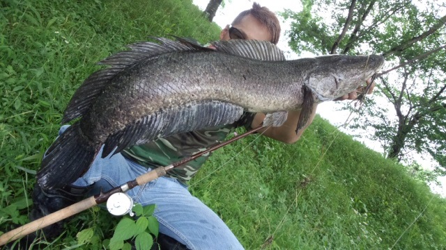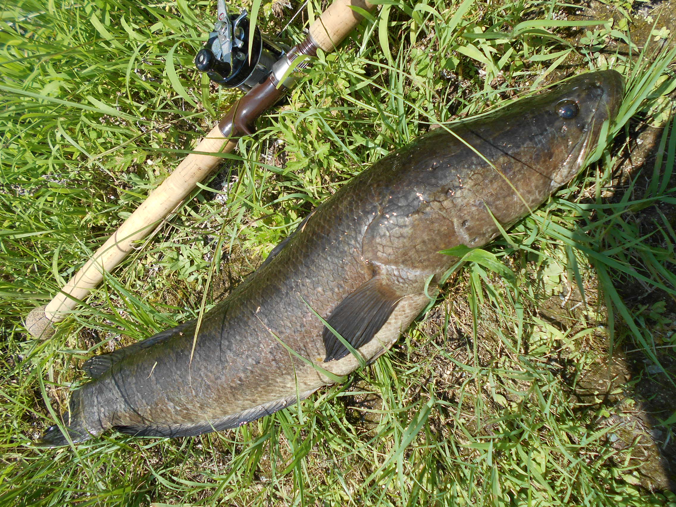 ・・・となりの草むらでキャスト練習しろ、て言ったら、、オレが魚の役??