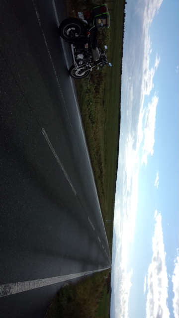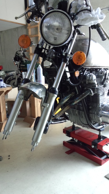 さて月曜日!天気も良いのでちょっとパトロールに出ようかと…思ったらまた不具合が!安っすいチューブはイカンなぁ~! それとは関係ないが多分スゴイ発見をしたぞ!「殆どのバイクはフロントフォークがねじれている」は知られていて、その修正方法もインターネット(とやら!)に沢山紹介されてるけど、「なんでねじれる?」…転倒、事故は当たり前ですが、旧車の場合特に「駐車してるだけでねじれてくる」んじゃないでしょうか?センタースタンド付きは当てはまらんけどフツーはハンドル左に切って駐車しますよね?で傾いてる車重がず~っとかかっててフロントフォークがねじれてくる…その証拠に逆方向のねじれは見たことない(自然ねじれでは)! 結局サイドスタンドで傾くんだけど右に切って駐車した方が悪影響少なそう!今度からそうしよ。「アイツ変わっとるな~」と思われそうですが!