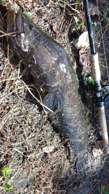 去年あるポイントでムータンが「変な魚が浮いてきた!」と。よくよく聞いてみるとポリプテルス・エンドリケリーぽい?帰って図鑑を見せるも「う~ん……」ま、なんかの見間違いやろ、と完全に忘れてたら……見てしも~た!何アレ!? エンドリケリーぽいけどもっと丸くて寸詰まり?アンコウみたい?淡水やしな…捕食?に上がってきた感じで大口開けてたけど…冬の水温とかも考慮してムリヤリこじつけると大口開けたマーレーコッドに見えなくもない…意外に俊敏だったが一瞬水面でステイ。う~ん…