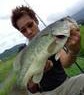 持ってないオレですが、その日はちょっとツイてました。と言っても一日のなかでその小一時間だけ、狙ったポイントで大型ばかりが浮き出しました!が、水がややクリアになったせいか、普段より呼吸が速く、予備ポイントで80クラスを撃ってみるも反応は薄いです。好機は2回・・対岸のサンドバー付近をかなりのスピードで泳ぎ回ってるヤツが・・デカい!うっすら見えるか見えないか位のレンジをキープしてたまにスッと呼吸に上がる、、ブラ下げてるのは喰わせに特化した軽量フロッグ。なかなか射程距離に入りません。相変わらず速いスピードのまま、ちょっと流芯付近に寄ったタイミングで進行方向へキャスト!なかなか良い位置に・・と言うかドンピシャ過ぎ!しかもそこで呼吸に上がって直撃! ドボォ!と逃げて一瞬、反転してフロッグを見ましたがソレっきり浮いてきませんでした! 次!射程距離内にまあまあ?90あるなし位が浮いて、キャストもOK! 食い気はなさそうだったので視界に入るあたりでジョ!ジョバッ!!でボフッ! アワセも決まり?ドバドバッ!でスコッ!と抜けました。。。一部始終を見ていたムータンに「ア、アワセのタイミングは良かったデスカ?」と聞くと、今のでバレたらしょうがないよ!とのお言葉。 その後も80中盤位は浮くけど、、ガマン。 スコール降りだし、最後の最後で「次浮いたヤツは釣ってやる!」で70に満たないヤツを釣ってしまいました。 夕方、晴れてきたものの、スコールのせいかベイトも浮かず沈黙のまま終了。 持ってない、いや、今回はウデが未熟やったかな?