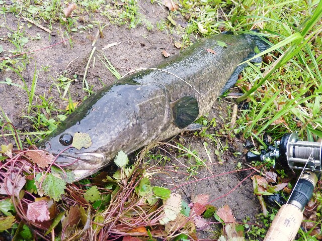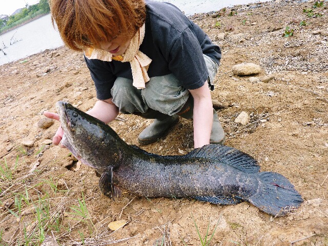 ・・・が、今回は非常に悲しい結果でした。生命感あふれる水路が、ドブ川と化して、、回復どころか、もうここには魚は住めないだろうな。 また別のポイントでは、、雑草を掻き分け、エサ釣り師?バス釣り?の釣り座らしきところにたどり着くと、ライギョの死骸が4ヒキ!・・・・・・・