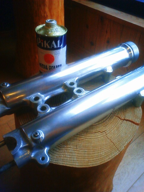 フロントフォークOHのついでにアウター磨き
